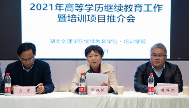 (通讯员 曾子颖)4月9日,我院2021年高等学历继续教育工作暨培训项目推介会在南漳顺利召开。出席本次会议的领导有:金莎js9999777的网址党委常委、纪委书记、湖北省监察委员会驻金莎js9999777的网址监察专员宋双伟,学校教务处处长聂军、计划财务处处长刘万君、后勤保障部党总支书记宋成亮,襄阳市教育科学研究室主任李茂炽、襄阳市工会干部培训学校副校长杨柳。会议由继续教育学院·培训学院院长张来斌主持。